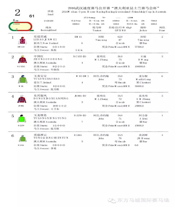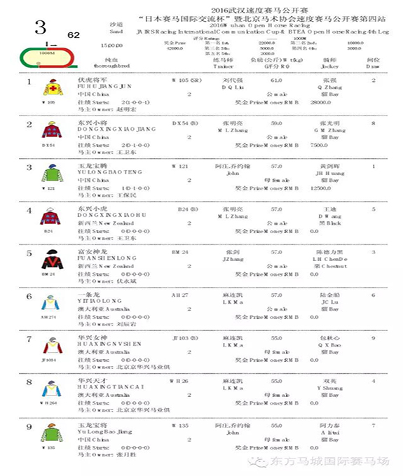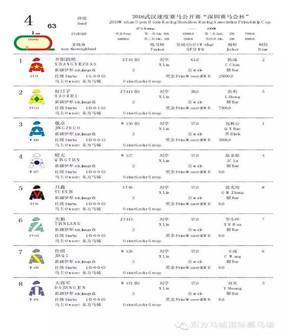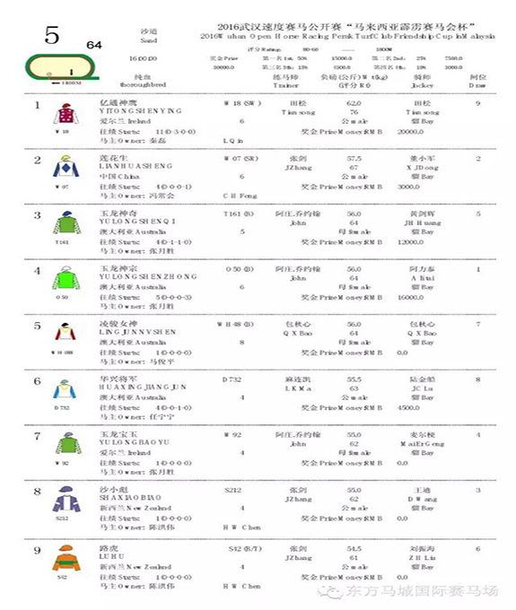 2016武汉速度赛马公开赛”友好城市“主题赛马日将于11月19日(本周六)东方马城鸣锣开闸,各参赛马匹已排兵布阵,各得其位,赛事手册新鲜出炉,先睹为快!