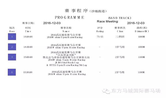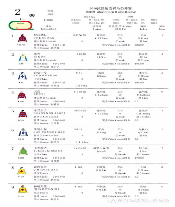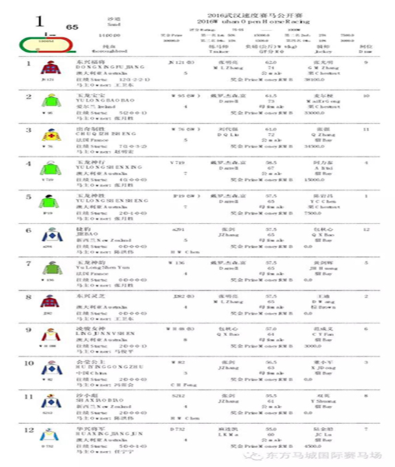 第一场 2016武汉速度赛马公开赛 75-55 三/四班 1000米赛事