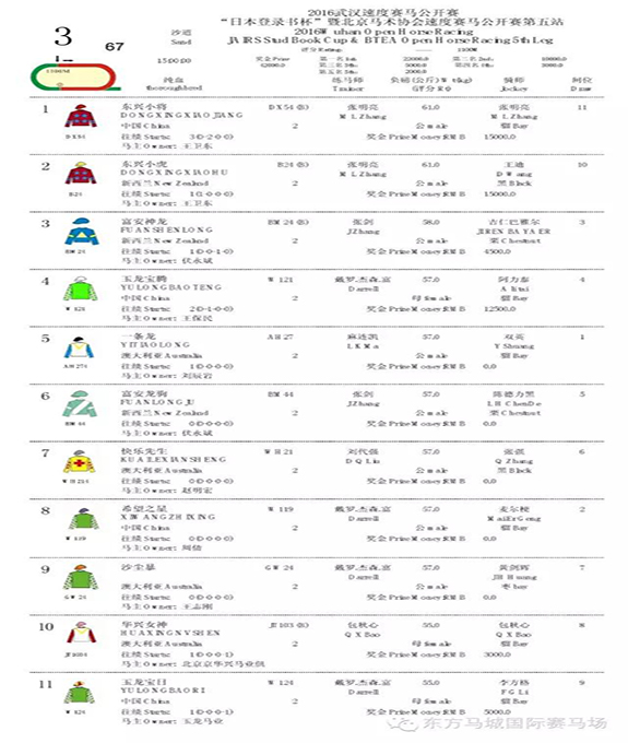 第二场 2016武汉速度赛马公开赛 3岁马组1000米赛事