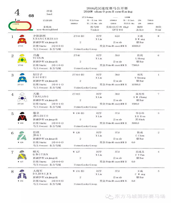 第四场 2016武汉速度赛马公开赛 非纯血组2岁马组1100米赛事