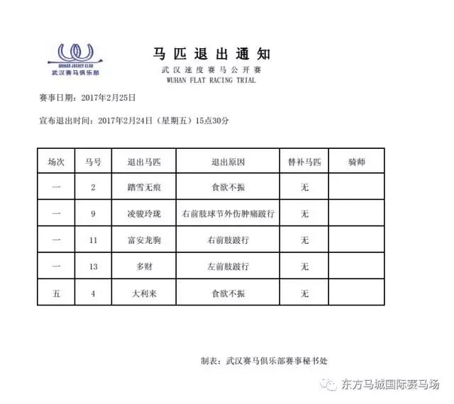 【最新公告】“踏雪无痕”“凌骏玲珑”“富安龙驹”“多财”“大利来”退出25日比赛