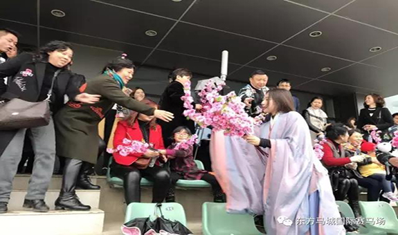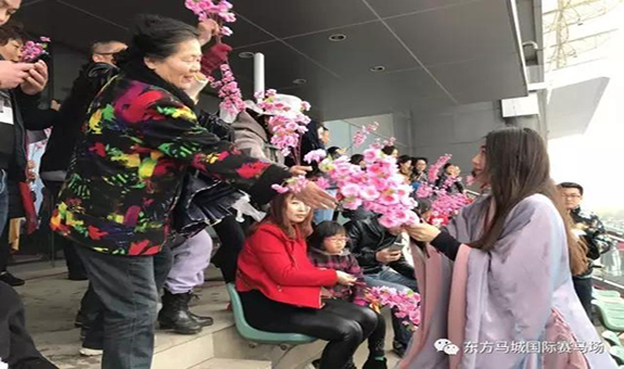 3月12日,恰逢国际植树节,今天天公并虽然不作美,也丝毫没有阻止武汉马迷观赛热情。2017武汉速度赛马公开赛“美在马城”主题赛马日在东方马城国际赛马场如期炫美亮相,现场观众热情高涨。烟雨渺渺,东方马城国际赛马场向大家呈现了别样的柔美姿态 。桃花仙子现身观赛区,簇簇桃花将现场装扮的分外迷人,恍惚间犹如置身十里桃林。
