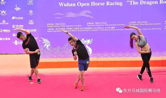来自武汉市体适能协会体能训练表演团队的10位健身教练为现场观众带来了精彩的体能表演,向观众们展示了健康律动之美。随后,3位健身教练与现场观众进行了健康体适能趣味互动,通过简单的动作向广大马迷们传递了全民健身、运动健康的理念和科学健身的方法。全体观众纷纷起立,跟着教练的指导、和着音乐的旋律一起互动、一起健身。